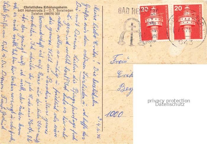74034315 alte Postkarte Soislieden Huenfeld Christliches Erholungsheim Landschaftspanorama Felsen postalisch gelaufen Erhaltung siehe scans [FriedD77] KatCode: 11110006632010