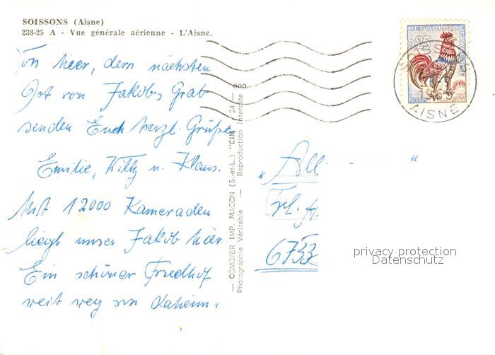 13224442 carte postale Soissons Aisne Fliegeraufnahme postalisch gelaufen Erhaltung siehe scans [KathaD81] KatCode: 11170002402722