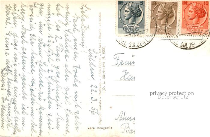 old postcard Solda Sulden Gruppo dell Ortles verduta verso Monte Beltovo postalisch gelaufen Erhaltung siehe scans [FriedD77]
