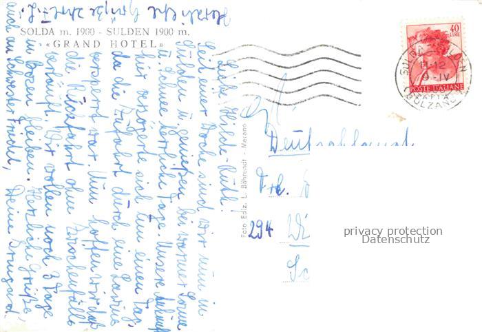 34145942 old postcard Solda Sulden Trentino-Alto-Adige IT Grand Hotel postalisch gelaufen Erhaltung siehe scans [WerneD78] KatCode: 11240000000000