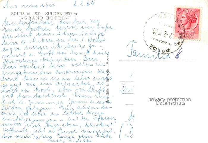34145676 old postcard Solda Sulden Trentino-Alto-Adige IT Grand Hotel postalisch gelaufen Erhaltung siehe scans [WerneD78] KatCode: 11240000000000