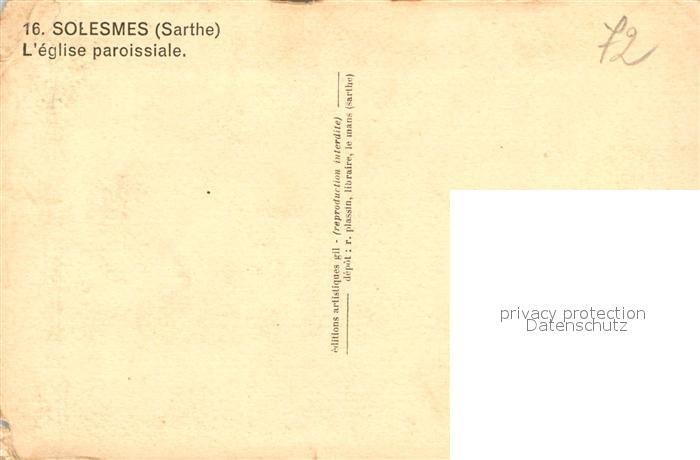 13572255 Solesmes Sarthe Eglise paroissiale postalisch nicht gelaufen Erhaltung siehe scans [PaolaD17] KatCode: 11170072172336