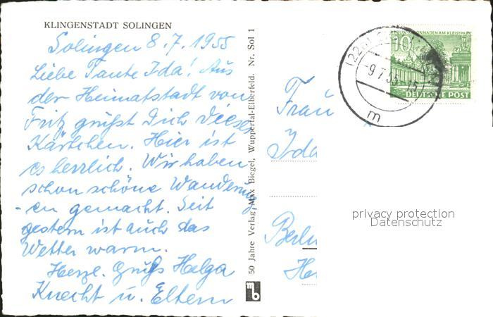 32040752 alte Postkarte Solingen postalisch gelaufen Erhaltung siehe scans KatCode: 11110005122000