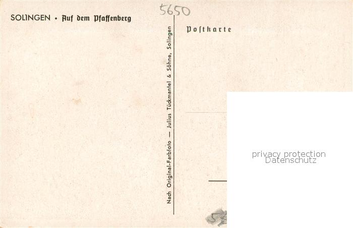 73694998 Solingen Auf dem Pfaffenberg postalisch nicht gelaufen Erhaltung siehe scans [LiesaD40] KatCode: 11110005122000