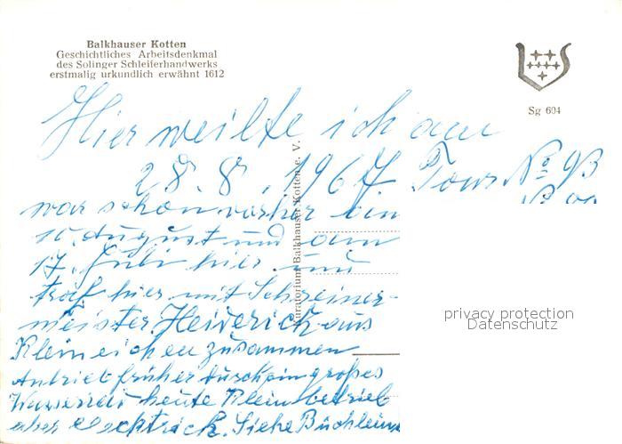 72945005 Solingen Balkhauser Kotten Arbeitsdenkmal Schleiferhandwerk postalisch nicht gelaufen Erhaltung siehe scans [FriedD77] KatCode: 11110005122000