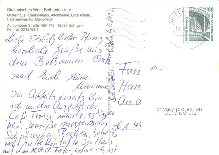 72504317 alte Postkarte Solingen Diakonisches Werk Bethanien Mutterhaus Fliegeraufnahme postalisch gelaufen Erhaltung siehe scans KatCode: 11110005122000