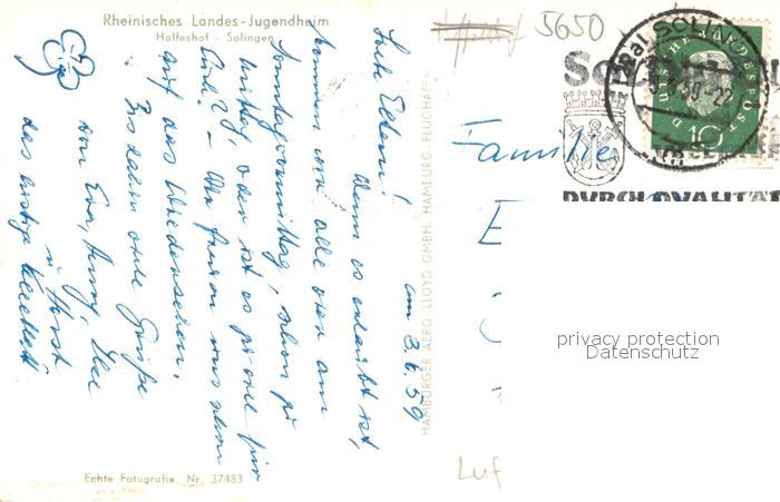 73705587 alte Postkarte Solingen Fliegeraufnahme von Halfeshof postalisch gelaufen Erhaltung siehe scans [LiesaD40] KatCode: 11110005122000