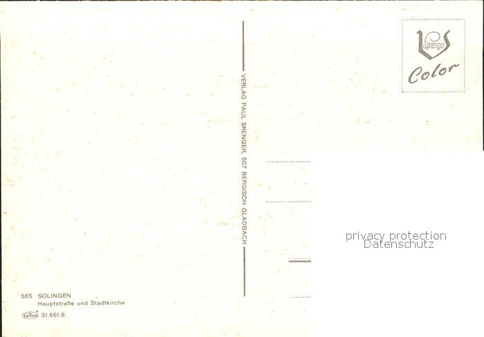 72402062 Solingen Hauptstrasse und Stadtkirche postalisch nicht gelaufen Erhaltung siehe scans KatCode: 11110005122000