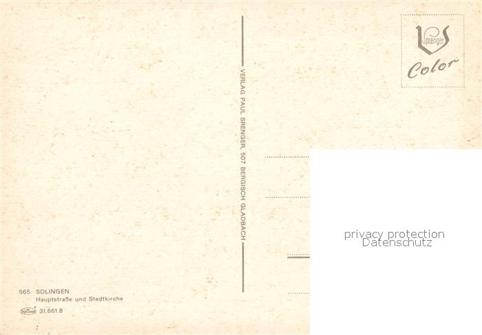 73017307 Solingen Hauptstrasse und Stadtkirche postalisch nicht gelaufen Erhaltung siehe scans [WerneD78] KatCode: 11110005122000