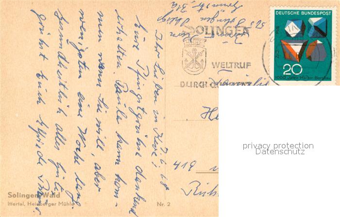 73678456 alte Postkarte Solingen Heidberger Muehle postalisch gelaufen Erhaltung siehe scans [LiesaD40] KatCode: 11110005122000