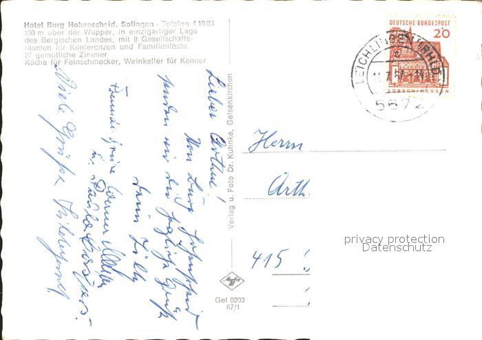 72204212 alte Postkarte Solingen Hotel Burg Hohenscheid postalisch gelaufen Erhaltung siehe scans KatCode: 11110005122000