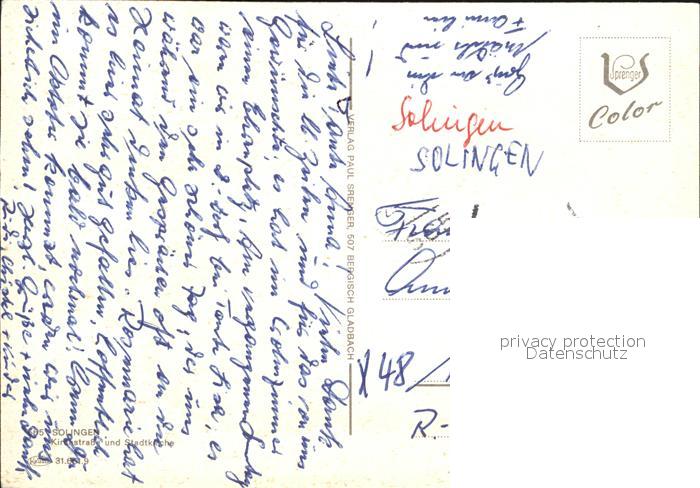 72543220 alte Postkarte Solingen Kirchstrasse Stadtkirche postalisch gelaufen Erhaltung siehe scans [WerneD78 kv016box] KatCode: 11110005122000