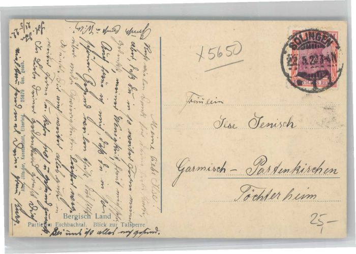40689399 SOLINGEN NRW [Stempelabschlag] Eschbachtal Talsperre postalisch gelaufen Alte Ansichtskarte Postkarte alte Postkarte Katcode 11110005122000