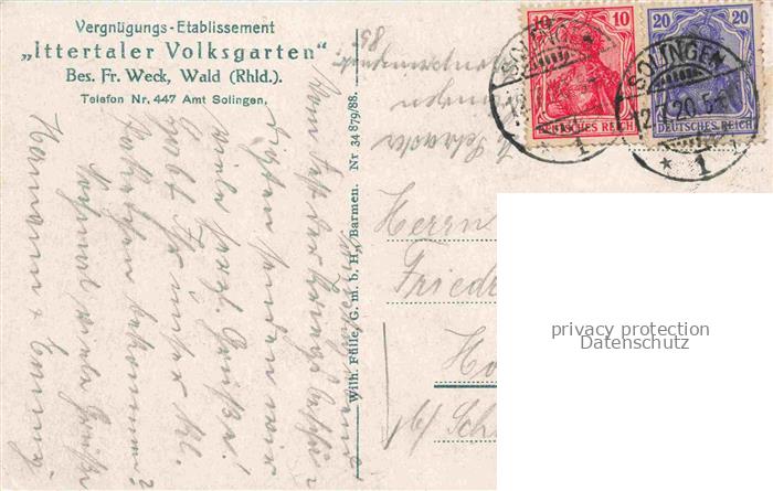74010282 SOLINGEN NRW Vergnuegungs-Etablissement Ittertaler Volksgarten postalisch gelaufen Erhaltung siehe scans [FriedD77] alte Postkarte Frie Katcode 11110005122000