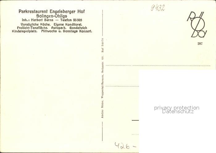 31729872 Solingen Parkrestraurant Engelsberger Hof postalisch nicht gelaufen KatCode: 11110005122000