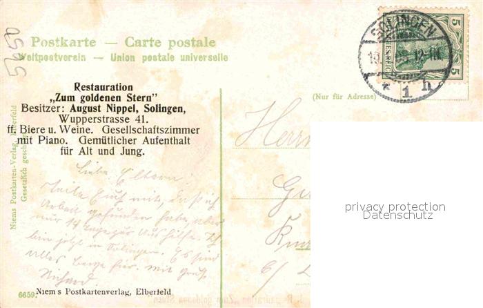 42805858 alte Postkarte Solingen Restaurant Zum goldenen Stern postalisch gelaufen Erhaltung siehe scans [PaolaD17] KatCode: 11110005122000