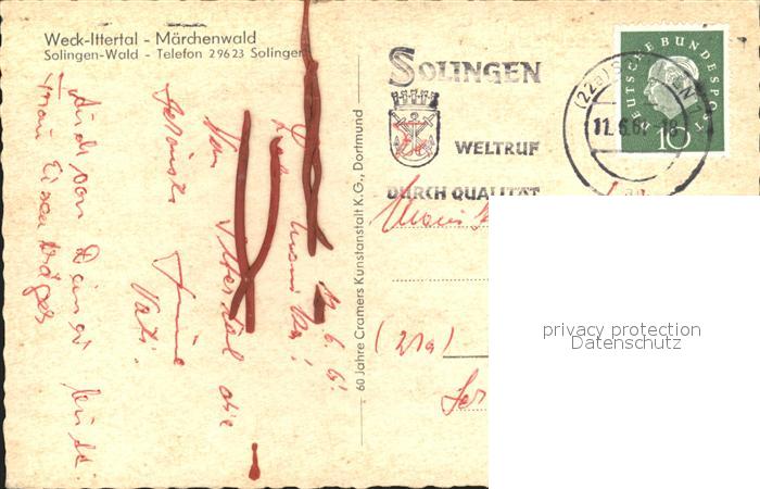 72217688 alte Postkarte Solingen Weck- Ittertal Maerchenwald postalisch gelaufen Erhaltung siehe scans KatCode: 11110005122000