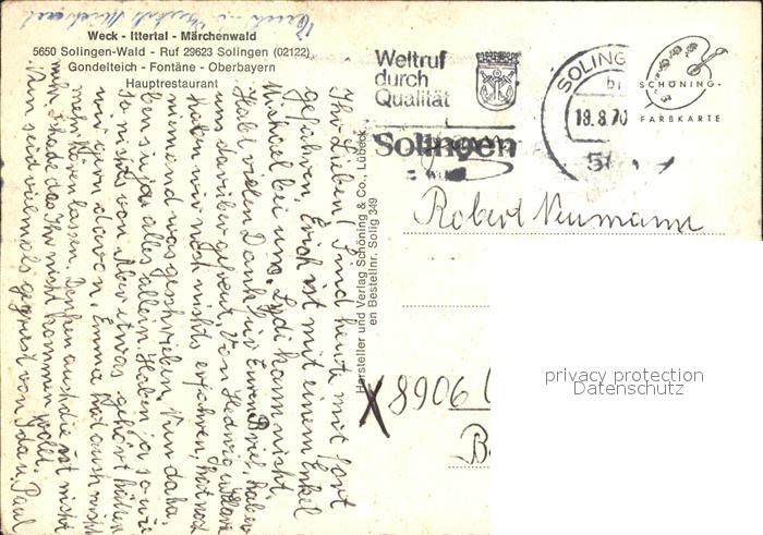 72534515 alte Postkarte Solingen Weck Ittertal Maerchenwald postalisch gelaufen Erhaltung siehe scans [AndreD76 kt121box] KatCode: 11110005122000