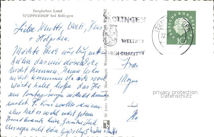 72202468 alte Postkarte Solingen Wupperhof postalisch gelaufen Erhaltung siehe scans KatCode: 11110005122000