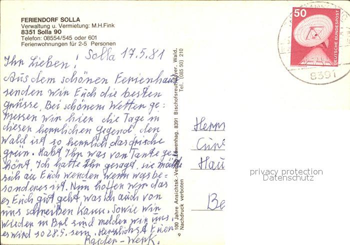 alte Postkarte Solla Waldkirchen Feriendorf am Brotjacklriegl postalisch gelaufen Erhaltung siehe scans