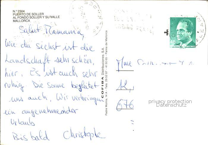 old postcard Soller Mallorca Fliegeraufnahme postalisch gelaufen Erhaltung siehe scans