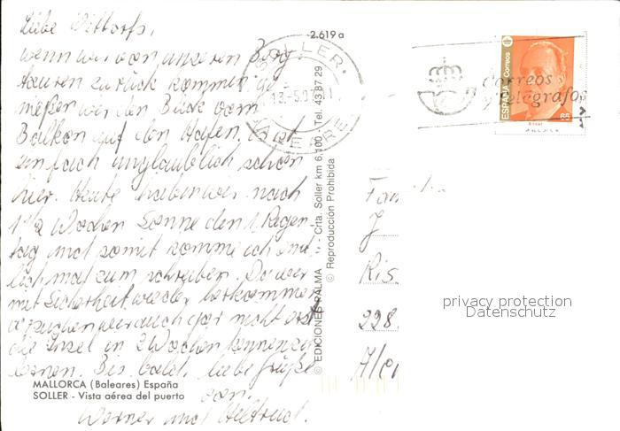old postcard Soller Mallorca Fliegeraufnahme Puerto postalisch gelaufen Erhaltung siehe scans