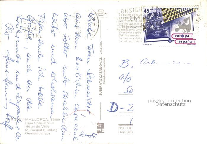 old postcard Soller Mallorca Gemeindehaus postalisch gelaufen Erhaltung siehe scans