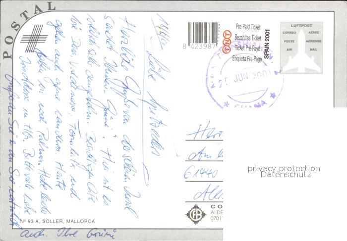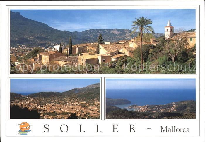 old postcard Soller Mallorca Panorama Fliegeraufnahme postalisch gelaufen Erhaltung siehe scans