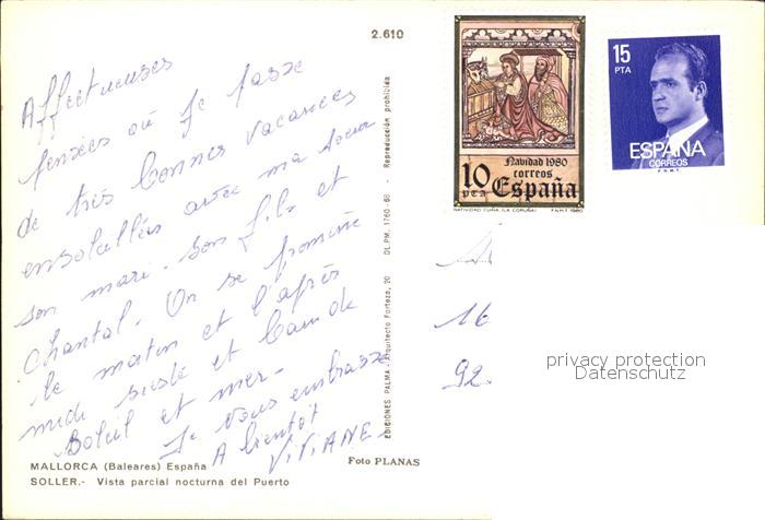 Soller Mallorca Vista parcial nocturna del Puerto postalisch nicht gelaufen Erhaltung siehe scans