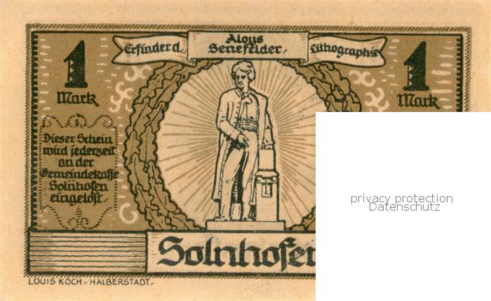 73776900 Solnhofen 1 Mark Geldschein postalisch nicht gelaufen Notgeldschein (keine Postkarte) Erhaltung siehe scans [WerneD78] KatCode: 11110009577168