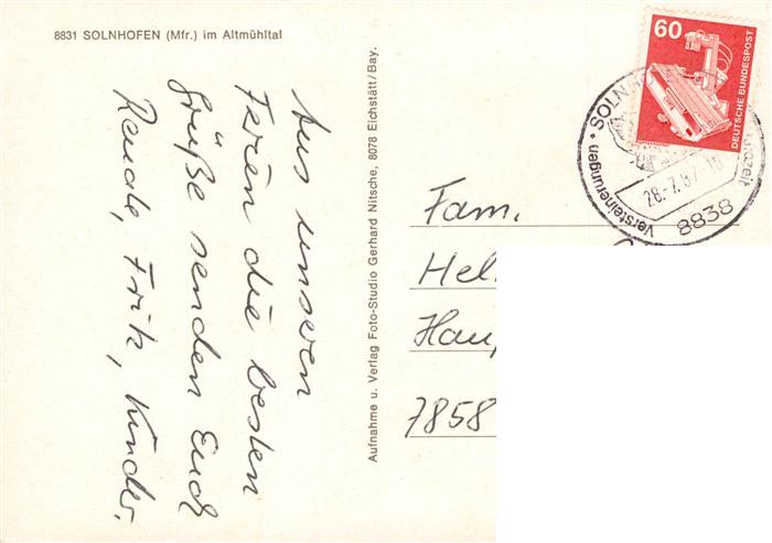 73915469 alte Postkarte Solnhofen Panorama Senefelder Denkmal Parkanlage Gemeindehaus Basilika Kugelzahnfisch Felsenpartie Die 12 Apostel postalisch gelaufen Erhaltung siehe scans [FriedD77] KatCode: 11110009577168