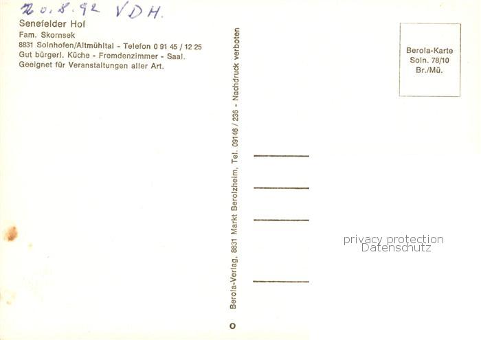 73844809 Solnhofen Senefelder Hof Gastraeume postalisch nicht gelaufen Erhaltung siehe scans [FriedD77] KatCode: 11110009577168