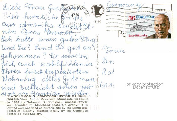 72854670 old postcard Solomon Kansas G. Comstock House postalisch gelaufen Erhaltung siehe scans [LiesaD40] KatCode: 14140180000000