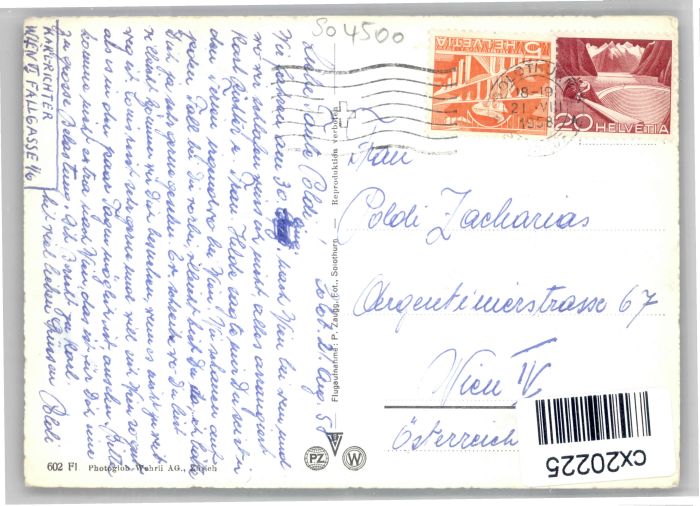 10738154 alte Postkarte Solothurn Fliegeraufnahme postalisch gelaufen KatCode: 11470180535462