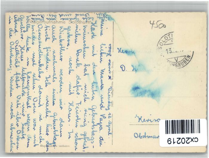 10738151 alte Postkarte Solothurn Fliegeraufnahme postalisch gelaufen KatCode: 11470180535462
