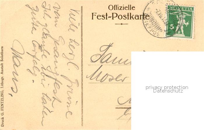 13566989 alte Postkarte Solothurn XIII. Solothurnisches Kantonalgesangfest postalisch gelaufen Erhaltung siehe scans [KathaD81] KatCode: 11470180535462