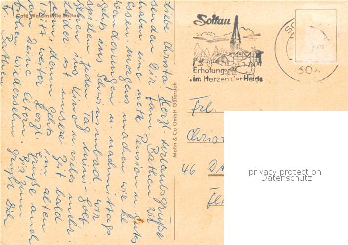 73830487 alte Postkarte Soltau Cafe Waldmuehle postalisch gelaufen Erhaltung siehe scans [WerneD78] KatCode: 11110003358021