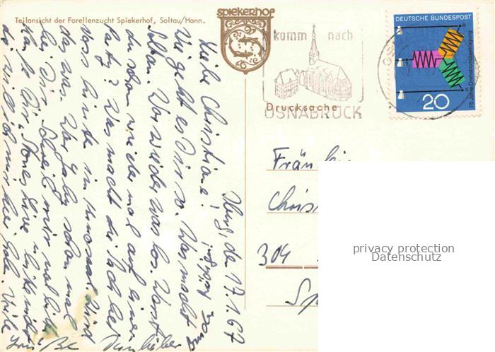 74034368 alte Postkarte Soltau Forellenzucht Spiekerhof postalisch gelaufen Fliegeraufnahme Erhaltung siehe scans [FriedD77] KatCode: 11110003358021