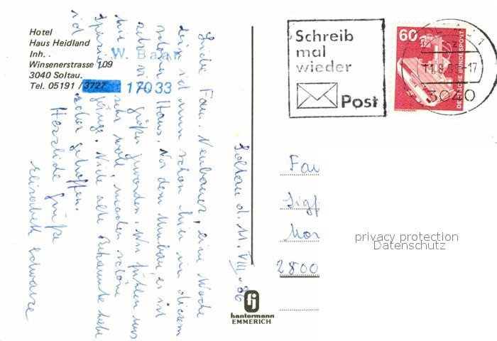 72795641 alte Postkarte Soltau Hotel Haus Heidland postalisch gelaufen Erhaltung siehe scans [FriedD77] KatCode: 11110003358021