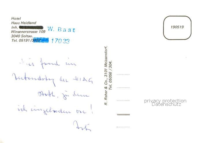 73837798 Soltau Hotel Haus Heidland postalisch nicht gelaufen Erhaltung siehe scans [WerneD78] KatCode: 11110003358021