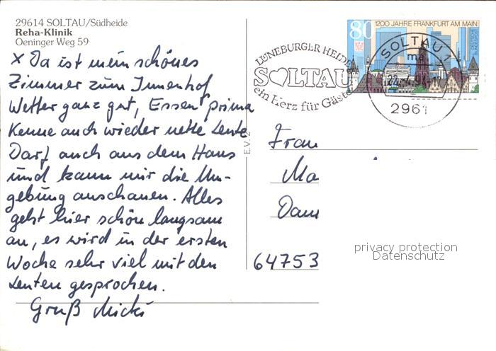 72503978 alte Postkarte Soltau Reha Klinik postalisch gelaufen Erhaltung siehe scans KatCode: 11110003358021