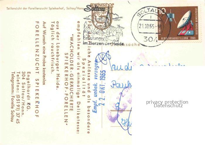 74096386 alte Postkarte Soltau Soltau-Fallingbostel Niedersachsen Forellenzucht Spiekerhof Fliegeraufnahme postalisch gelaufen Erhaltung siehe scans [WerneD78] KatCode: 11110003358021
