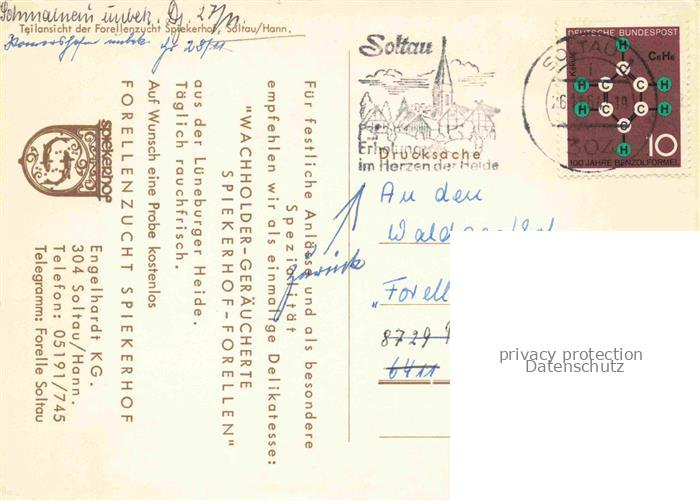 74044811 alte Postkarte Soltau Soltau-Fallingbostel Niedersachsen Forellenzucht Spiekerhof Fliegeraufnahme postalisch gelaufen Erhaltung siehe scans [WerneD78] KatCode: 11110003358021