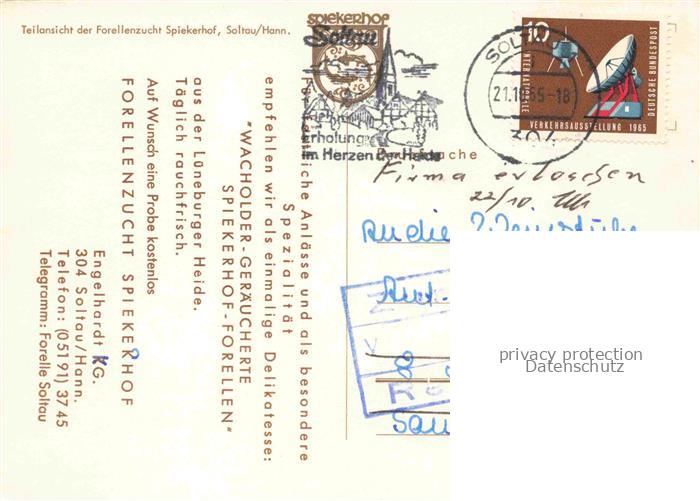 74039240 alte Postkarte Soltau Soltau-Fallingbostel Niedersachsen Forellenzucht Spiekerhof postalisch gelaufen Fliegeraufnahme Erhaltung siehe scans [FriedD77] KatCode: 11110003358021