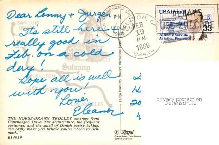 73126532 old postcard Solvang Horse Drawn Trolley Copenhagen Drive postalisch gelaufen Erhaltung siehe scans [FriedD77] KatCode: 14140050000000