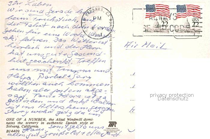 72662713 old postcard Solvang Windmuehle postalisch gelaufen Erhaltung siehe scans [AndreD76] KatCode: 14140050000000