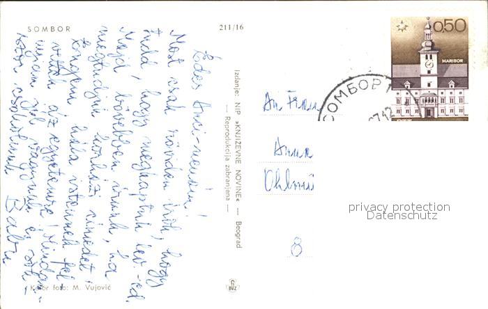 old postcard Sombor Firmengebaeude Gymnastikgruppe postalisch gelaufen Erhaltung siehe scans