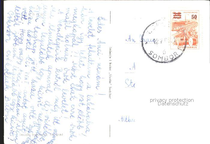 old postcard Sombor Panorama Ortsansichten Kirche postalisch gelaufen Erhaltung siehe scans