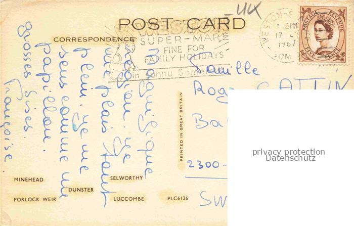 74012042 old postcard Somerset Bournemouth UK Minehead Porlock Weir Dunster Selworthy Luccombe postalisch gelaufen Erhaltung siehe scans [FriedD77] KatCode: 11570UKK2K21HN