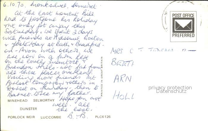 old postcard Somerset UK Hafen Strand Burg postalisch gelaufen Erhaltung siehe scans